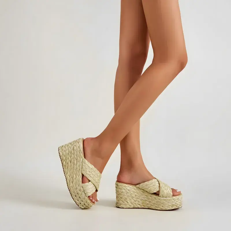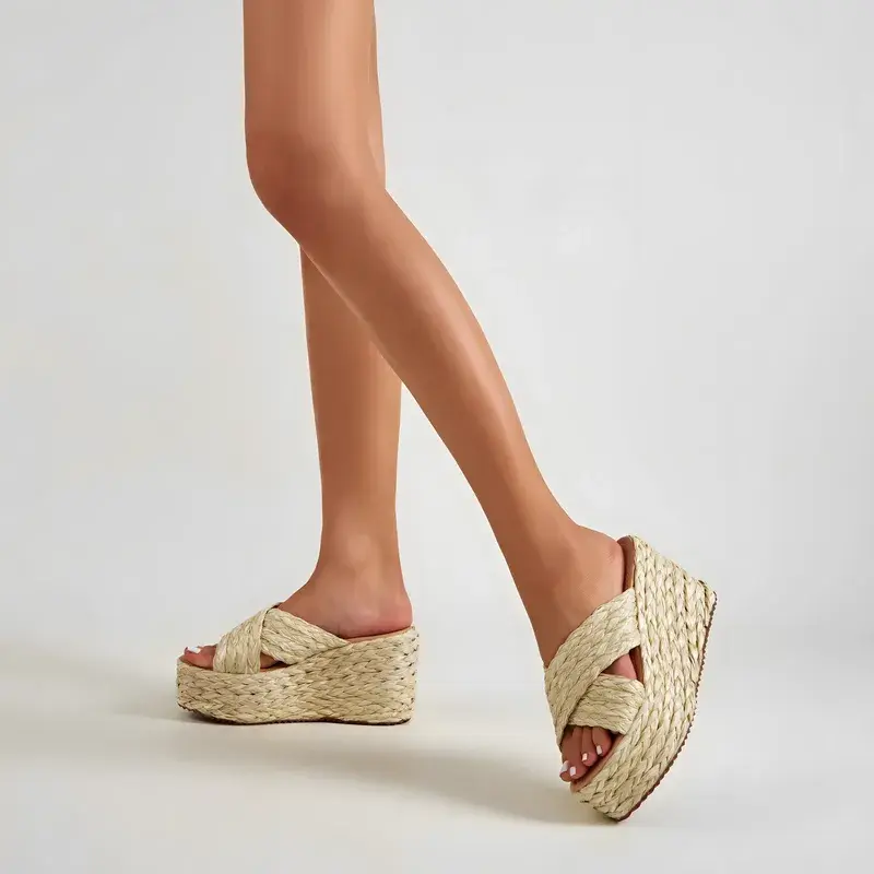 Chaque pas est une affirmation de style avec les Sandales Plateforme Paille. Inspirées par la beauté brute de la nature, ces sandales beige transforment le tressage traditionnel de paille en une silhouette audacieuse. Conçues pour la femme moderne, elles apportent une touche d’élégance décontractée à vos tenues estivales.